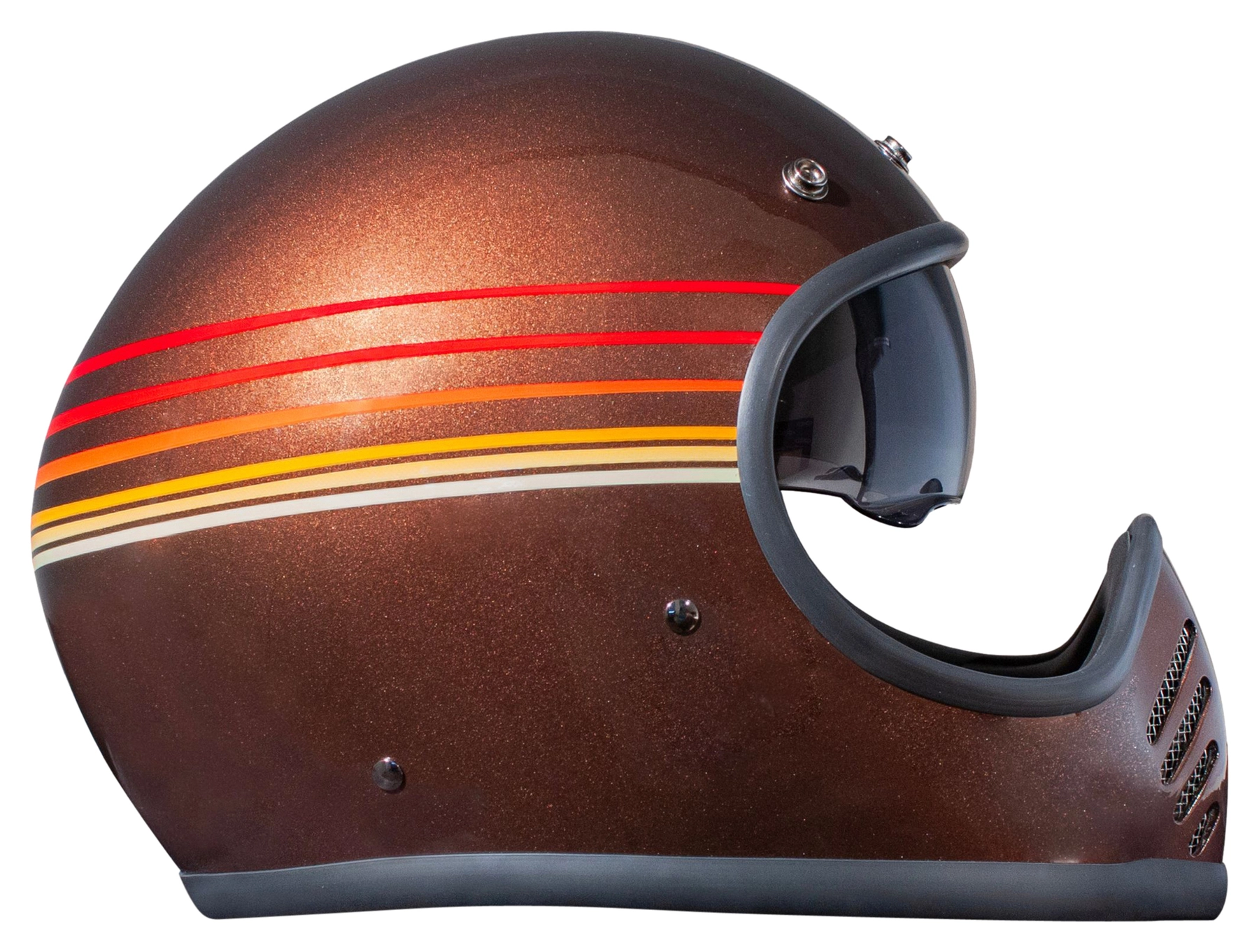 Para los conocedores de la escena vintage y retro, los cascos y demás productos de la marca italiana DMD son viejos conocidos. Y es que, desde 2007, esta empresa familiar de Bérgamo, Italia, fabrica y comercializa para Europa y EE. UU. productos de mucho estilo con un diseño de los años 70. De este modo, ofrecen exactamente lo que los amantes de las oldtimers, cafe racers, scramblers, choppers y motos customizadas buscan. Los italianos se sienten muy orgullosos de haber conseguido poder combinar un tamaño del casco lo más pequeño posible con el máximoconfort y protección para la cabeza, cumpliendo al pie de la letra con los estándares de seguridad más recientes.